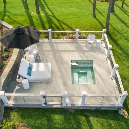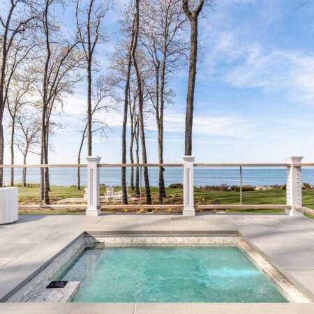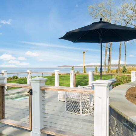Our design team worked closely with the homeowners to create an outdoor space that would enhance their lifestyle while highlighting the property’s natural beauty. The raised design of the deck creates a distinct outdoor room with unobstructed views of the water. Careful attention was paid to proportions and sight lines, ensuring that the spa area would feel like a natural extension of the home.